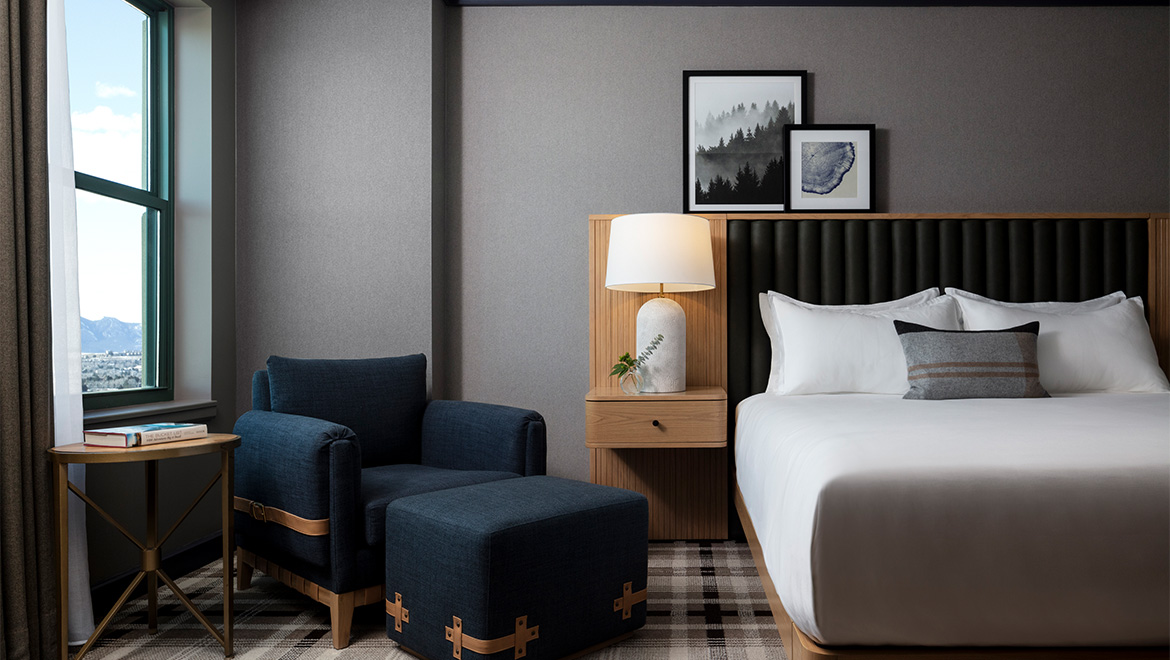 Our newly renovated 390 guestrooms and suites are thoughtfully designed to reflect the beauty of the great outdoors while providing upscale comfort and amenities. The design seamlessly blends bold patterns and colors with raw, rustic finishes to create a modern yet timeless Colorado retreat. With breathtaking views of the snow-capped Rocky Mountains or lush green valleys, convenient gear storage, and custom wall coverings showcasing outdoor recreation scenes, our reimagined rooms offer the perfect basecamp for your next adventure.