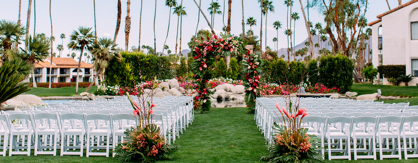 Walk down the aisle with picturesque palm tree views enveloping your wedding party.